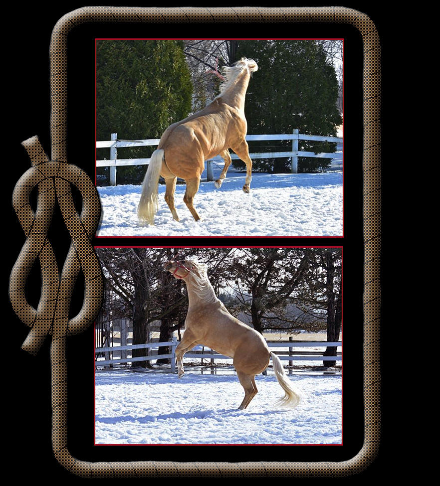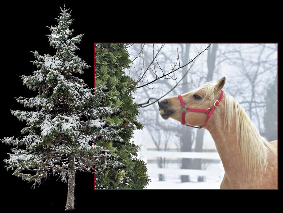 Our weather has been terrible. This warm weather and rain on snow has made it very slippery outside. On Friday, Bob Luebker and I were taking Rebecca (You Bet Im Cool) and Jackie (Luvin Pizzazz) out to their shelter, assuming the driveway was okay. Well, guess what----it was covered with black ice and Jackie who I was leading fell down and scrambled to get back up. (Of course she is my only pregnant one) What a feeling to stand there surrounded by ice knowing that I had to get her out of there. We made it but it sure put a scare in me. Needless to say, they stayed in the barn the rest of the day and all day yesterday. Today we were able to get them out. You would think I don't feed my horses as poor Fred (Classically) started eating the branches off a tree. I sure hope it doesn't get colder and freeze before we bring them back in the barn. |