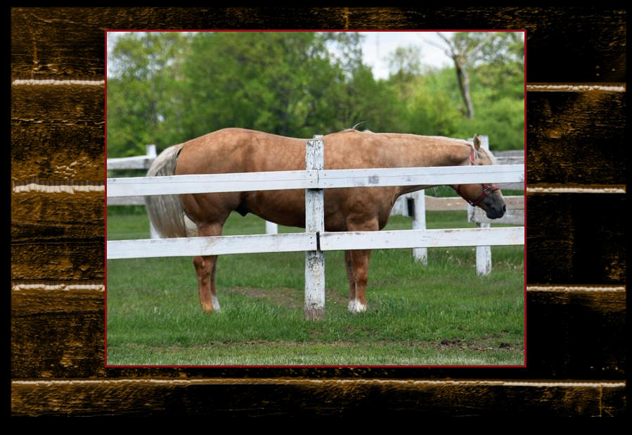 Yesterday was the last day that Fred (Classically) gets to graze all day in the pasture. Leah Gloudemans and I were looking at him yesterday and decided that his new name is going to be "Fat Freddie" Without us even realizing it, he gained a lot of weight---in fact, he looks pregnant. Today was his first day in a "dry lot" and he was sure ready to come in the barn tonight and have supper. Whatever you heard about stallions getting nervous and losing weight during breeding season, I don't think Fred heard the same thing. |