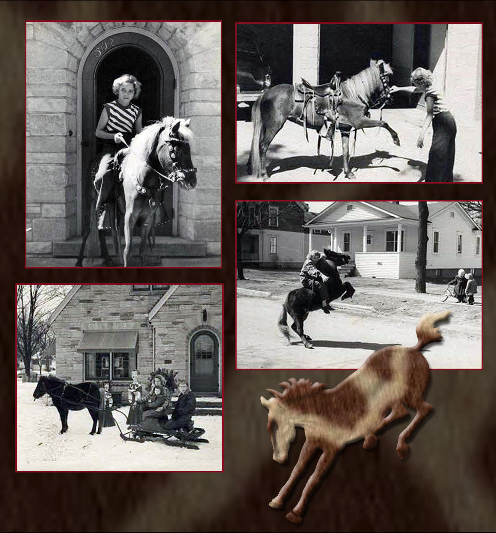 Sitting here this morning, I started thinking about my childhood and how much things have changed. “Back then” everything seemed much easier---we had no cell phones, computers, no gun violence, no political fighting. Of course, people had their ups and downs but I wish the younger generation could experience what I did as a child. I have always loved horses. I remember playing on the floor with miniature soldiers and Indians, of course they were on horses. I also remember “galloping” (actually running) slapping my side, making believe I was riding a horse. On the Christmas when I got my pony, I think I was the happiest little girl in the world. This is how it was back then. We kept Ginger, the pony in a barn behind our house. Other people kept their ponies in their garages in town. I remember that my dad would call the cab and Ginger would ride in the back seat when I wanted to go somewhere. Since he was a doctor, we took Ginger into the New London, Wisconsin hospital. I still remember walking her down the hallway and going through the swinging doors into the kitchen. The nuns were the cooks and Sister Jean would give Ginger cookies. We also took her on the elevator to see some of the patients. I taught Ginger many tricks and sometimes we would have a “circus” and different people would show off their pets. I also remember taking Ginger in the back seat of our car all the way to Larsen, Wisconsin as my aunt was a teacher in a one room schoolhouse and she wanted to show her to her students. Those were good old days and when I look back at how simple life was, I am happy I was able to experience it. I think this world would be a better place if things were still like they were back then. |