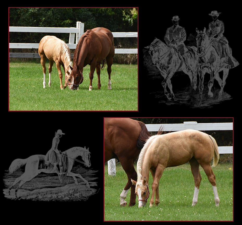 A picture from the past. The horse in front is Oliva (Cooleah) the bay in the middle is Janie (Kids Classic Gal) and the one in the back is PDS (Dandy Dee Gal) |