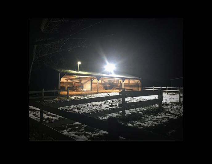 If you happen to be driving down County A in Neenah, Wisconsin at night after December 1, you will notice off in the distance what looks like a "used horse lot" After breaking my leg last year because I had mares confined in a small area in the shelter so they could be under lights, I thought why not light up the whole ares? So, my great friend, Richard Kaufmann came out and put up a huge LED light on the top of the shelter. I hope it doesn't cause planes to think it is a landing strip or that it is mistaken for a UFO. I know I am going to love this during the winter, knowing the mares have plenty of room and will still be under lights. |