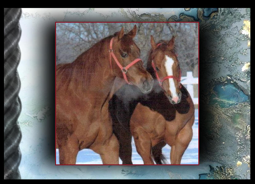 Thinking about my "two old mares" this morning and how lucky I am to have them. Rebecca (You Bet Im Cool) will be 20 years old next year and Bonnie (CJ Miss Cool Tardee) will be 19. It seems like yesterday that they along with me were young. Both of these mares are open and I really hope I can get them in foal next year. I know I will embryo Rebecca and am seriously thinking of doing the same to Bonnie. Both of these mares are big mares by Ima Cool Skip and out of Miss Bunny Tardee by Tardee Impressive. Rebecca is NN and Bonnie is NH. Both have fillies by their half brother, Fred (Classically) and I love the results of that cross. I do intend to get my "illusive filly" by My Intention out of Rebecca next year. Jim and Georgia Snow will have to put up with me one more time. |