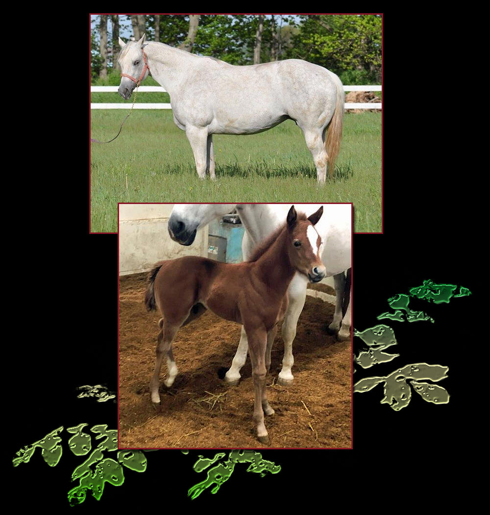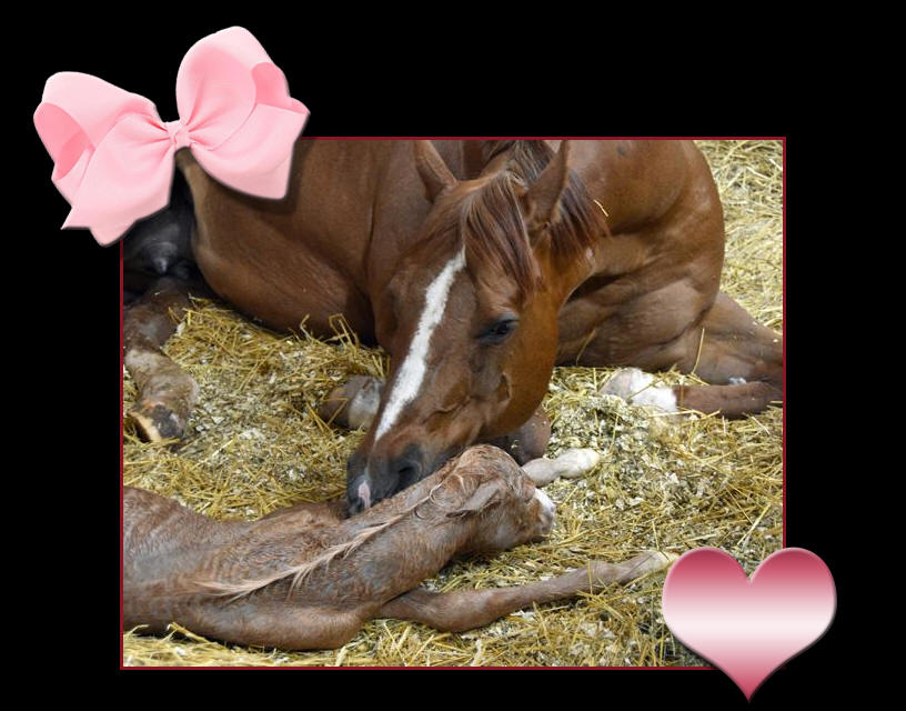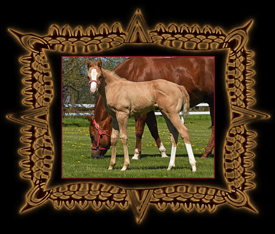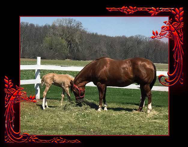 Bonnie (CJ Miss Cool Tardee) and her NN one month old filly by Fred (Classically) |