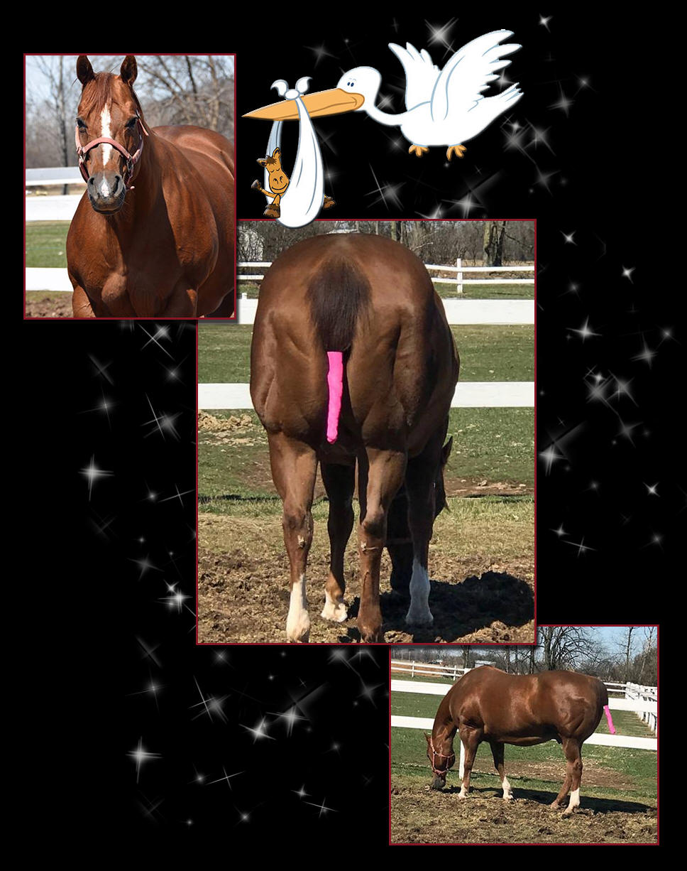 Guess who is going to have a baby (hopefully tonight) Bonnie (CJ Miss Cool Tardee) and Fred (Classically). She is overdue but I sure hope it is a filly. Bonnie is 18 this year and she and Rebecca (You Bet Im Cool) are the only two mares I plan to breed. Rebecca is 19 and they are full sisters by Ima Cool Skip out of Miss Bunny Tardee by Tardee Impressive. Bonnie is NH and Rebecca is NN. Note the pink tail wrap. |