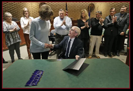 The governor's signing ceremony was held at Neenah City Hall, where Ellis began his political career as an alderman in 1969. It was attended by family, friends, state lawmakers and local government officials from the Fox Cities. Ellis championed the Fox Cities and worked to secure funding for the reconstruction and expansion of the I-41 interchange, which was completed last year. Evers said an aerial view of the interchange reminded him of Ellis' annual explanation of the state's school funding formula when Evers was state superintendent and deputy state superintendent of schools.