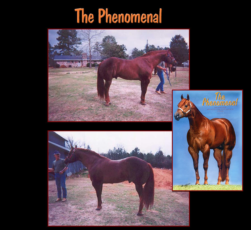You know what a sucker I am for a big hanging hip on a horse. This is a picture of The Phenomenal who was owned by Danny and Beverly Watts in Mississippi. A friend of Donna Davis took these pictures of him. I first saw the horse when he was a weanling at Jerry and Gwen Clarke Vawter's in Texas and loved both him and his mother. He was sired by Kid Clu and out of Velvet Skipa Star, a daughter of Skipa Star. He was a big horse and he sired many outstanding halter horses. The Jimmie and Joan Estes owned Velvet Skipa Star in her latter days and Joan told us how much they loved this mare. Bill Edmundson and I bred a couple of mares to him and later, I bought an own daughter of his. The Phenomenal had his faults like every horse does, but I loved his hip, head, and neck. I don't think there are many of his produce left. |