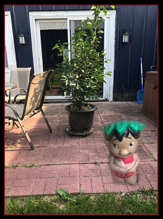 Summer must be here----today my orange tree got to move out of the house into the back yard. If you remember, back in 2014, Dennis Macarthur brought it to me from Alabama when he delivered a horse. Lorna Revord sent it and the beautiful pottery pot deteriorated over the years but the little Hawaiian girl that she put in it is still "alive" It is the only plant I have been able to keep alive under my care. Hopefully the tea roses will also come back. |
