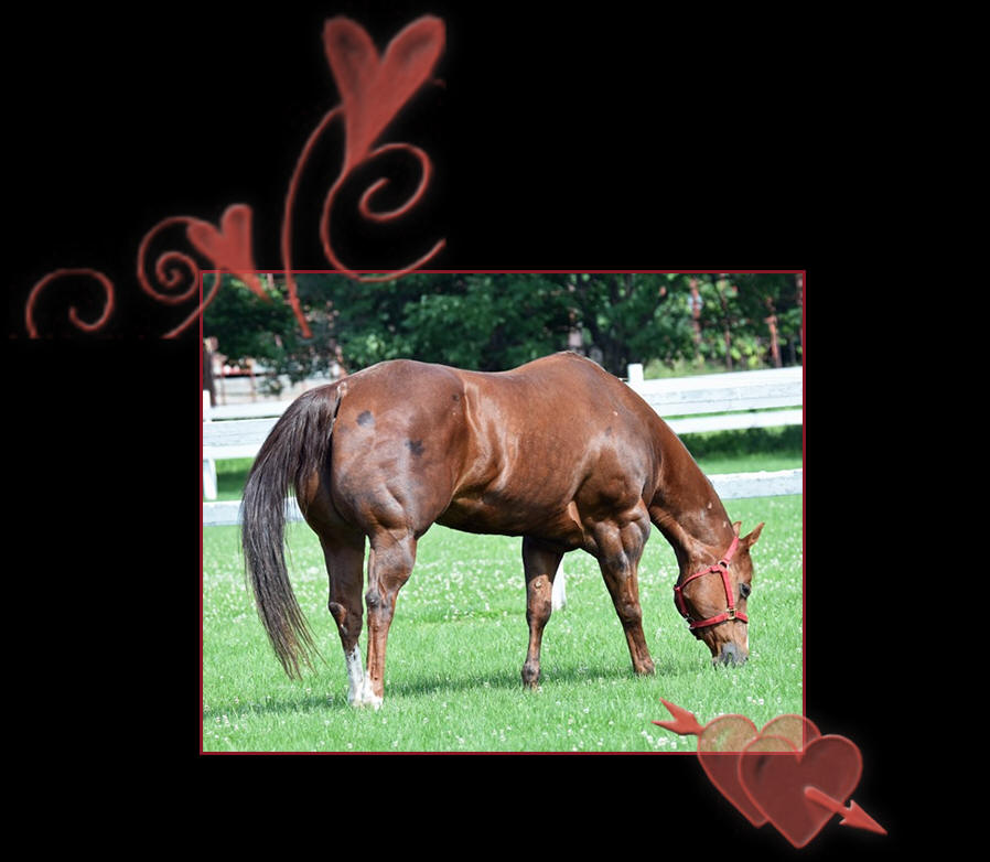 Bonnie (CJ Miss Cool Tardee) is still looking good at 18 years of age. She is sired by Ima Cool Skip and out of Miss Bunny Tardee by Tardee Impressive. She is NH and stands over 16 hands tall. |