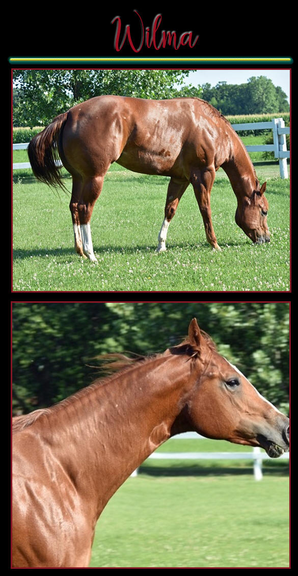 The year was 1996 and evidently by the way I am dressed in the picture, it was cold. Marcie Stadstad and Vickie Dennison Anderson came to visit me and see the horses. Vicki ended up buying Floyd, a stud colt by Obvious Conclusion out of Miss Bunny Tardee and she still has him. Marcie took this picture of Miss Bunny Tardee and me and the old mare was only 10 at the time. I know many of you have heard her "story" before but for those of you who haven't, here goes : As you know, Miss Bunny Tardee was the dam of Classically (Fred) and he is her last foal. She was also the dam of my two old mares, Rebecca (You Bet Im Cool) who is 19 and Bonnie (CJ Miss Cool Tardee) who is 18 . . I loved Miss Bunny Tardee from the first time Homer Danielson brought her dam, Bunny Nightshade to breed to Impressivist on her foal heat and she had Miss Bunny Tardee at her side. Say what you want about first foals not being good, Miss Bunny Tardee was not only a first foal but she was also born to a mare that was bred as a 2 year old and foaled at 3. As a foal, she was small but she always had that gorgeous strong back, incredibly high neck, a lot of heart girth and tons of muscle. She was sired by Tardee Impressive so she had every right to carry the amount of muscle she had. After Bunny Nightshade (who by the way was by Sonnys Nightshade by Sonny Dee Bar) got in foal, Homer took her home. The next time I saw the filly was at the Iowa Futurity where she placed but the class was won by another of Homer's fillies that was sired by Impressivist. There is no way that should have happened but Miss Bunny Tardee was still small but I thought she was the best baby there. By the time she was a yearling she had developed into a beautiful "potential show mare" Some of the big trainers wanted to show her but she hurt her eye and Homer took her to Iowa State University and they did surgery on it. The eye became infected and they ended up having to remove it. This made her a broodmare and Homer bred her to Impressivist when she was 2 years old. The filly that was born had a hole in her heart and we ended up having to put her down. Homer had brought her here to foal and I had decided that I really wanted to own the mare. In fact, I wanted her so bad, I couldn't sleep at night. I was able to buy Miss Bunny Tardee from Homer for a very reasonable price as he owed us money for stud fees and mare care. And, of course, being a woman, I had a little "secret money" that Mike didn't know about. I feel very lucky that I was able to own this mare. Her foals always had her strong back and tremendous heart girth. She produced 2 World Champions, along with several other great horses. . My program would not be what it is if she hadn't come into my life. Fred (Classically) and Rebecca (You Bet Im Cool) are out of her and both are NN. Bonnie (CJ Miss Cool Tardee) is also out of her and is NH. I took a big chance breeding the two full sister to Fred but I had confidence that doubling up on Miss Bunny Tardee was a good thing and it would give me many of the attributes of the old mare. I love it that the sire of Rebecca and Bonnie is Ima Cool Skip and the sire of Fred is Kids Classic Style as it adds even more muscle to the equation. As you know, I am elated over the results-----Wilma is out of Rebecca and both Pebbles and Betty are out of Bonnie. At my age, I decided that I cannot raise many foals anymore so I sold Betty to a wonderful home, Marko Kaiser and Judith Kaiser and she will be going to Germany later this year. Now I am looking forward to out crossing Wilma who is NN and Pebbles who is NH to outside stallions as I truly believe they will prove to be fantastic broodmares. Looking at this picture, you may get the impression Miss Bunny Tardee was not big, but I must have been standing on a hill as she stood a good 15.3. |